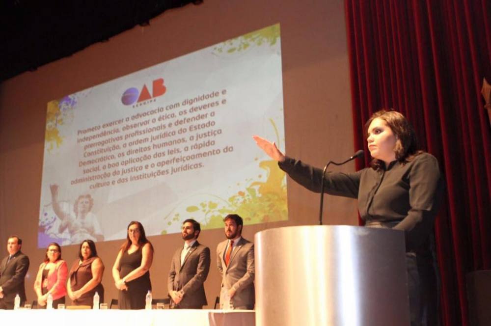 Adrielly Lima Silva, recebeu sua carteira de Ordem esta noite e também foi a juramentista da turma, e contou sua emoção: “essa noite para mim representa a realização de um sonho. Eu desejo advogar com todo meu coração. Essa noite é como tocar a felicidade com as duas mãos e após tantas batalhar falar ‘poxa, sou merecedora’. Espero poder estar a altura do que representa essa profissão e exercer com amor, dignidade e ética, pois meu coração bate pela advocacia”. Davi Pereira Lea, também recém-ingresso e orador da turma, fez um discurso eloquente, recheado de referências. Num dado momento, disse: “não foi fácil. Nós choramos, nós sofremos, mas nós insistimos. Nós continuamos, nós lutamos e estamos aqui hoje” e, por fim, conclamou todos seus colegas para, de pé, se colocarem com coragem para a profissão.