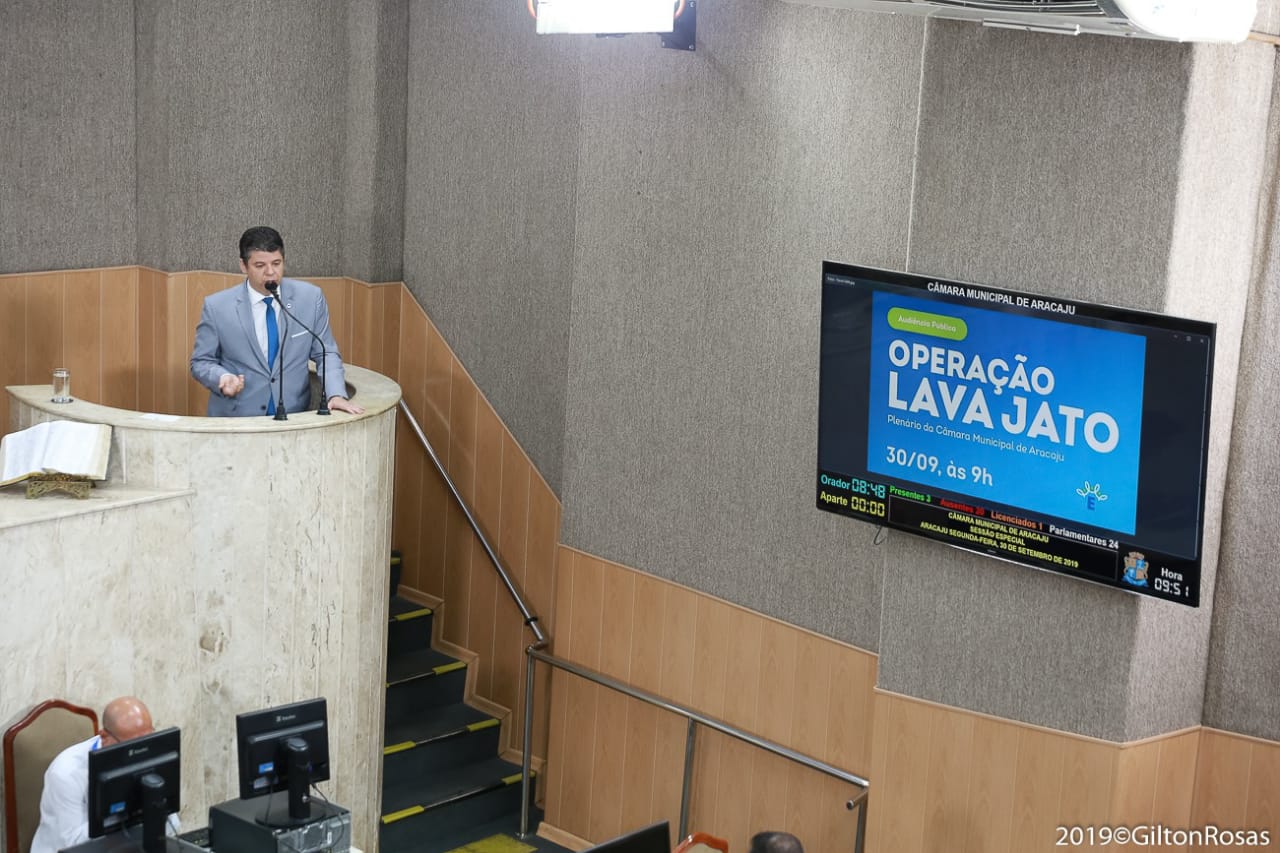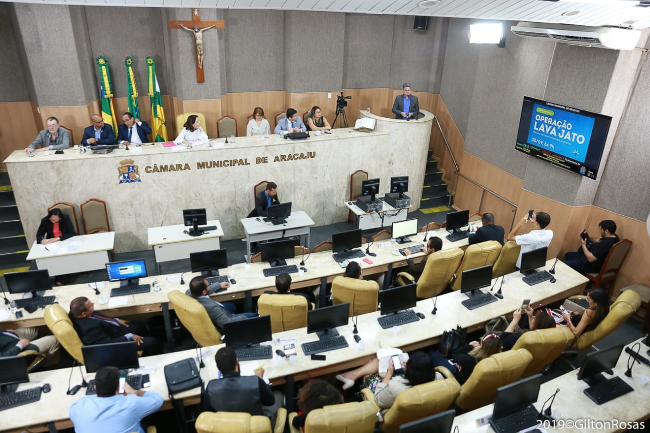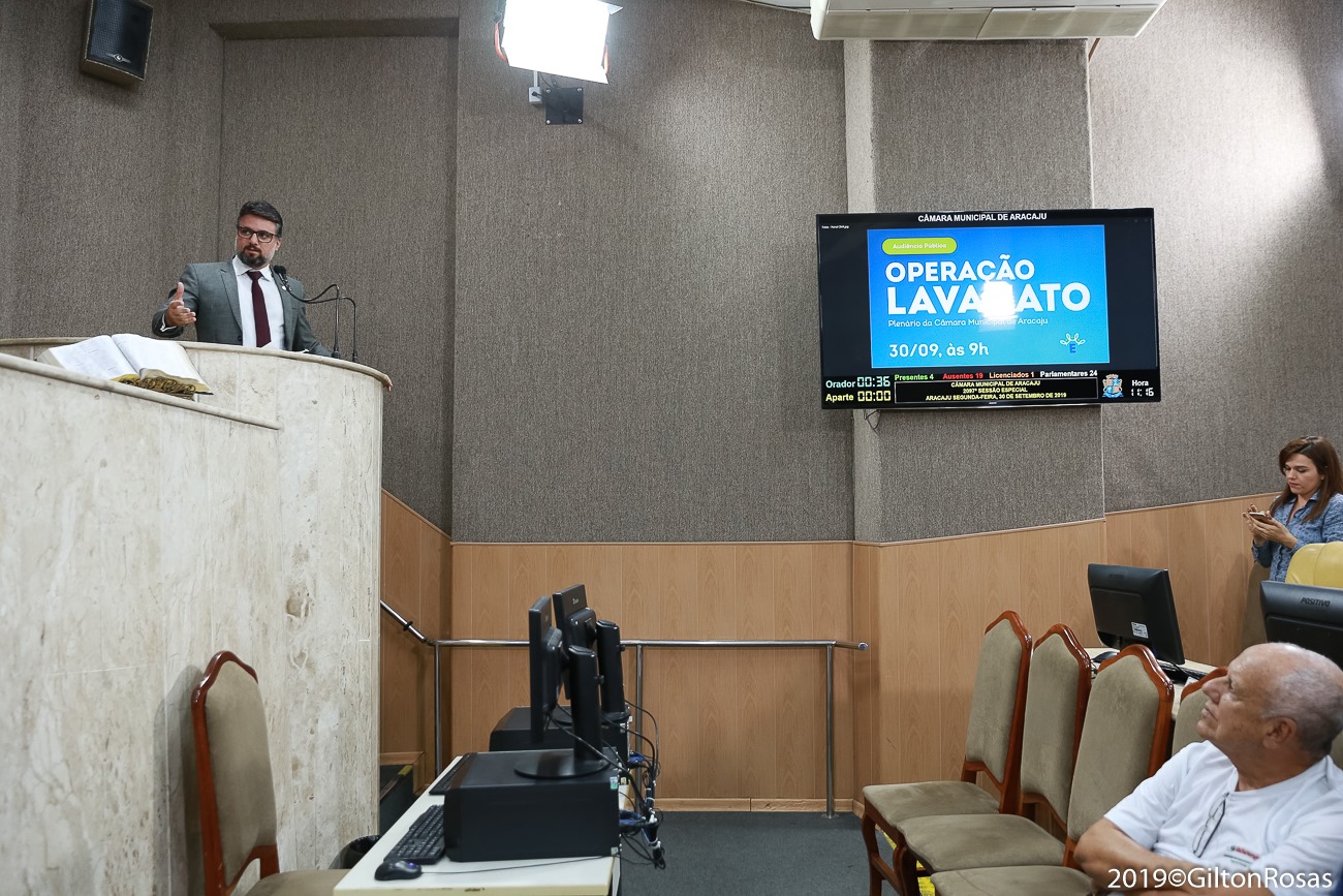 Nesta segunda-feira, 30, a Ordem dos Advogados do Brasil, em Sergipe (OAB/SE) participou no Plenário da Câmara Municipal de Aracaju, da Audiência Pública sobre a Operação Lava Jato. Na oportunidade, o secretário-geral da Ordem, Aurélio Belém, representou o presidente Inácio Krauss. Também estiveram presentes o presidente da Comissão de Controle Social dos Gastos Públicos e Combate à Corrupção da OAB/SE, Luciano Vieira Nascimento Neto, os vereadores Emília Corrêa, Amintas Oliveira Batista, José Américo Santos de Deus e Lucas Aribé, o senador Alessandro Vieira e a deputada estadual Kitty Lima, além de representantes da sociedade civil.
