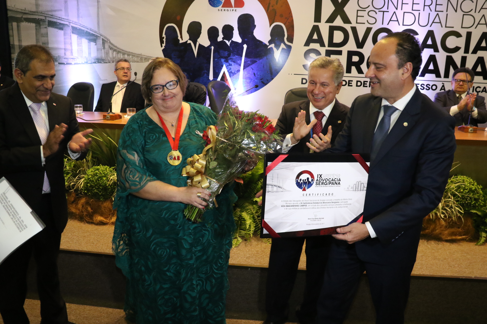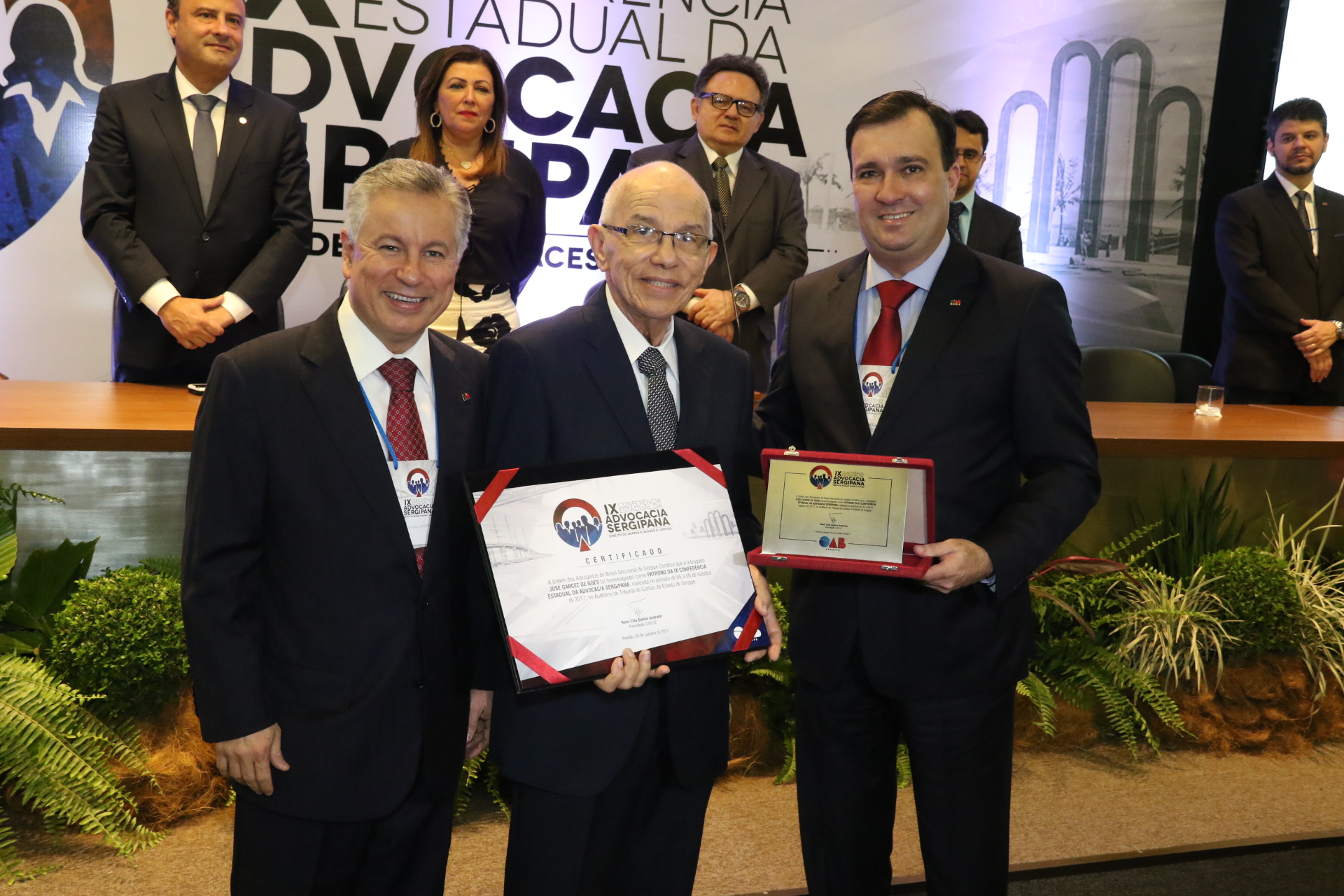 O evento foi abalizado pelas homenagens à advogada e ex-vice presidente da OAB/SE, Aída Mascarenhas Campos, reconhecida pela Medalha Silvio Romero, e ao advogado e ex-conselheiro federal e seccional, José Garcez de Góes, patrono da IX Conferência Sergipana.