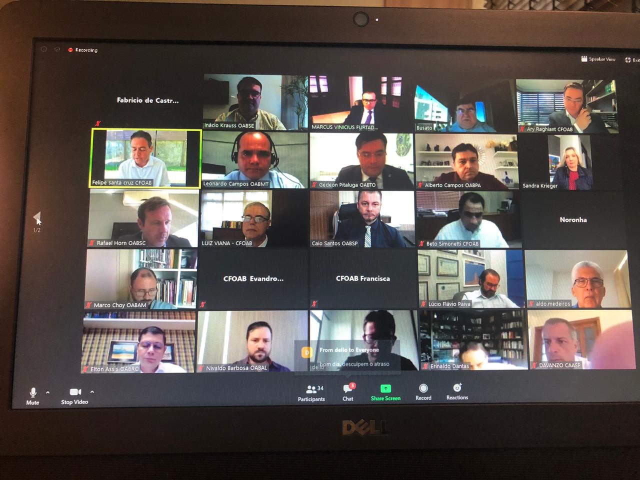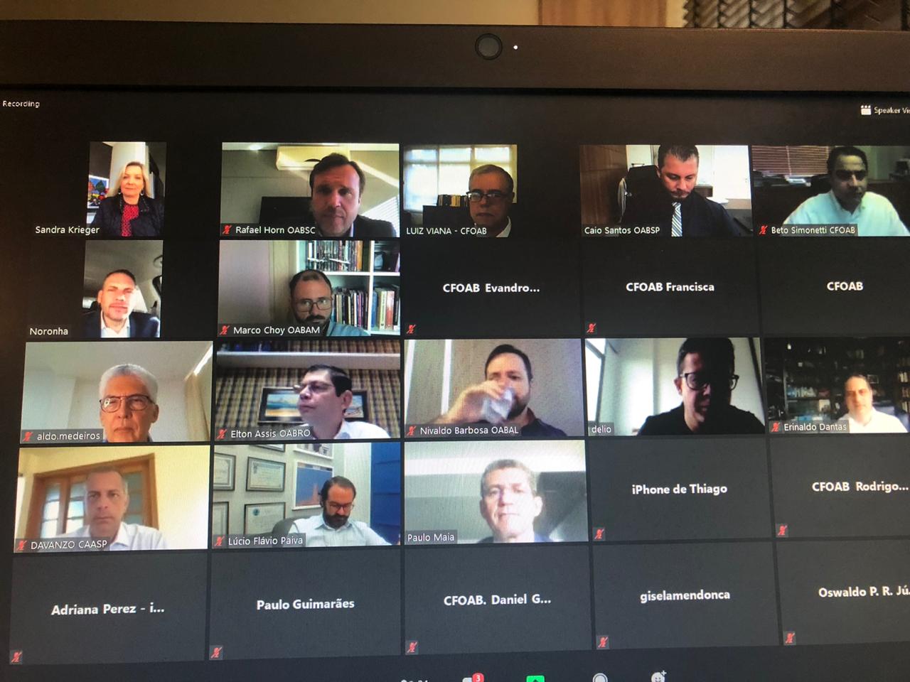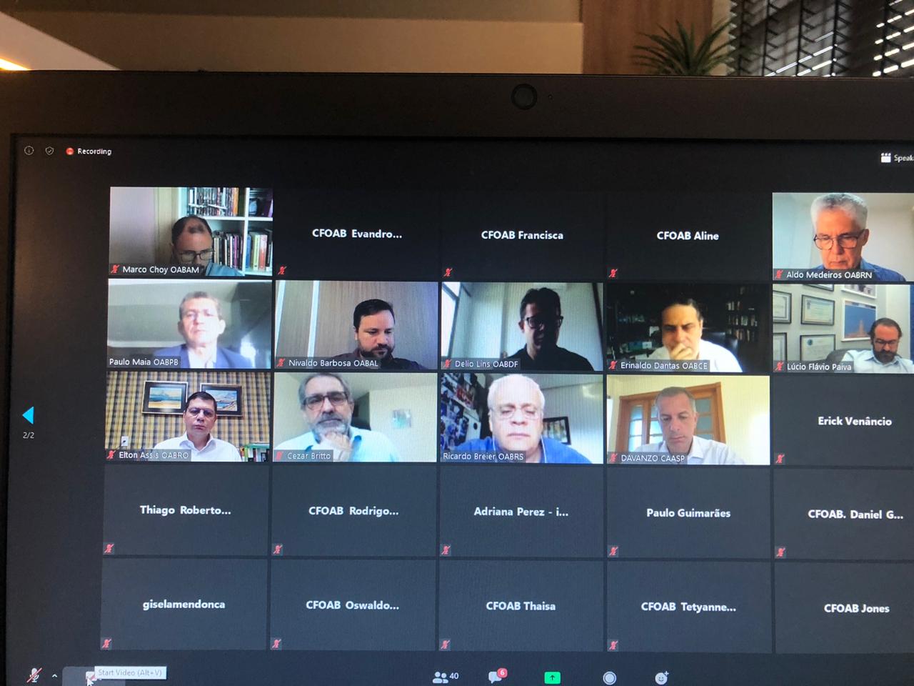 Ficou deliberado que o Colégio de Presidentes juntamente com a diretoria do CFOAB encaminharão ao Conselho Nacional de Justiça o requerimento para que a realização de audiências de instrução por vídeo conferência, em que houver outivas, não sejam compulsórias – e sim facultadas às partes, aos advogados e às advogadas.