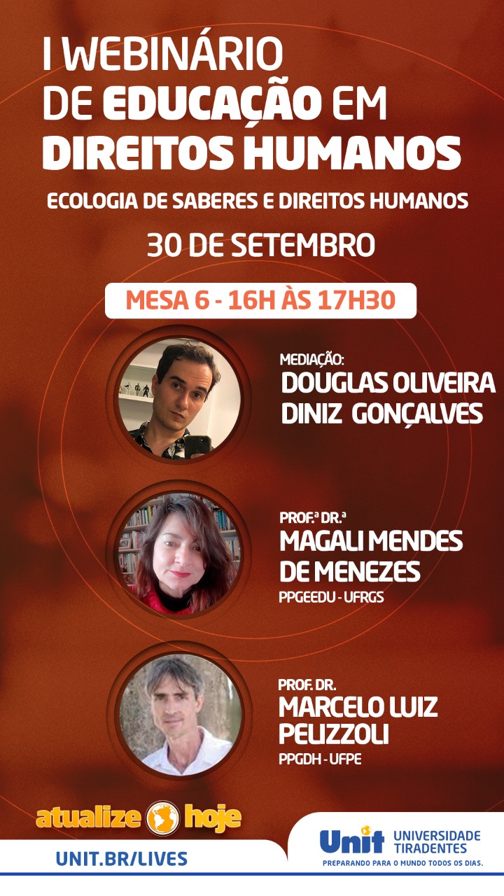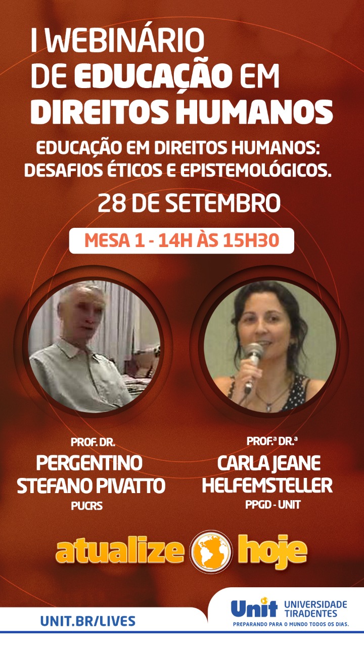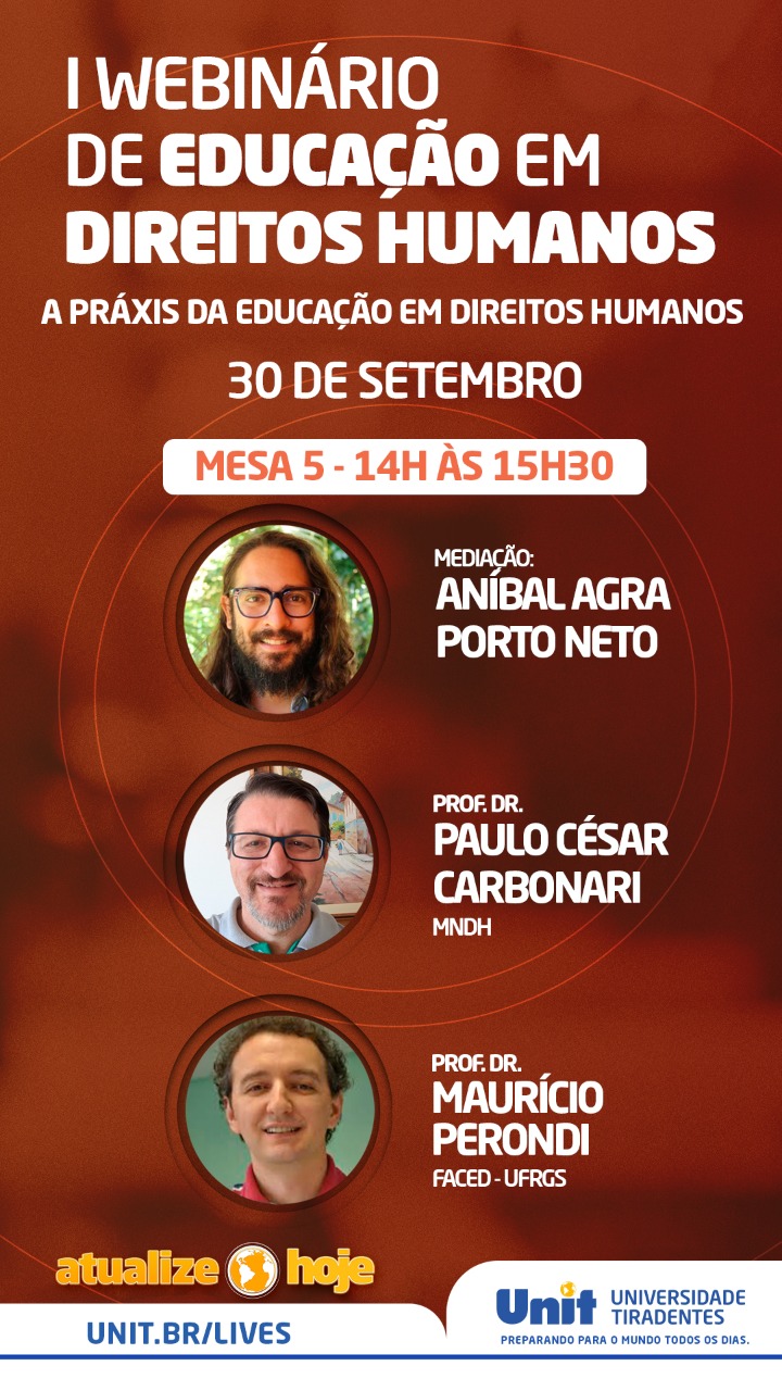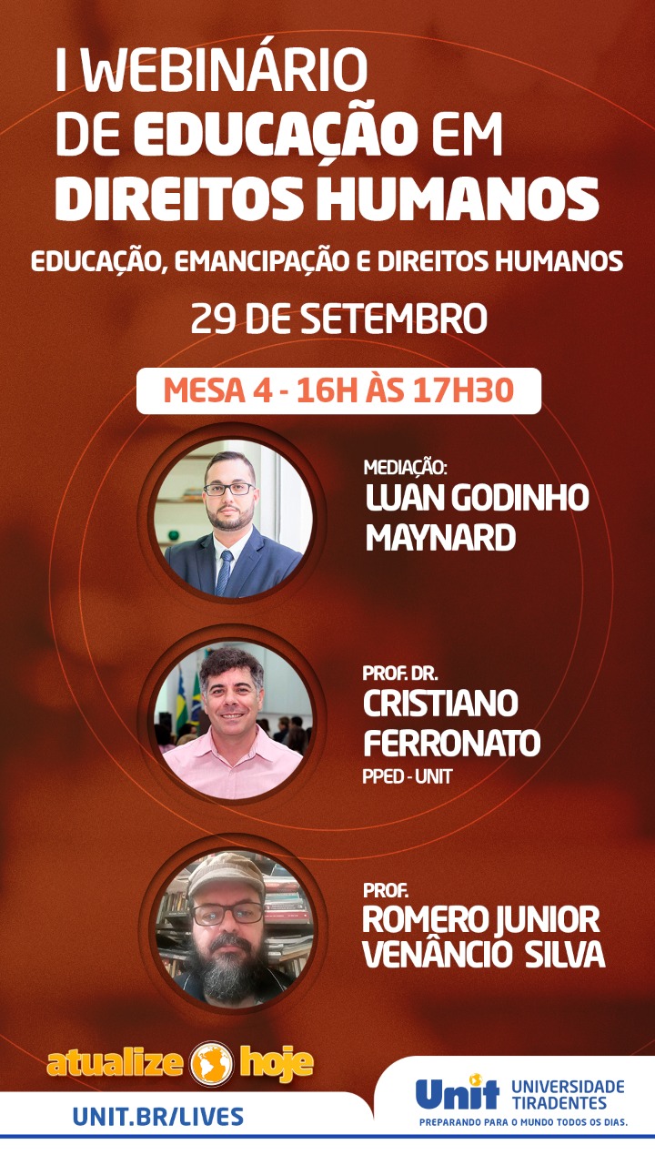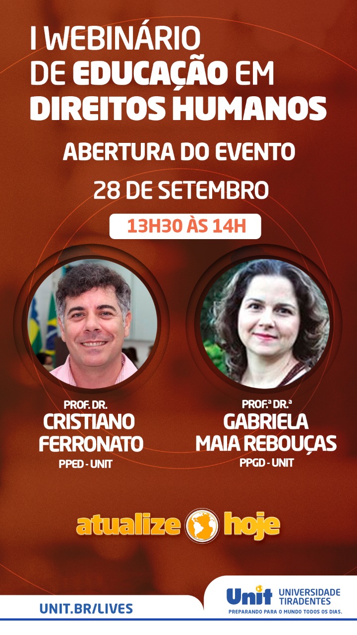 Com o apoio da Comissão de Direitos Humanos da OAB/SE, o I Webnário de Educação em Direitos Humanos teve início nesta segunda-feira, 28, e acontece até esta quarta-feira, 30. O evento é promovido pela Universidade Tiradentes e conta com grandes nomes do Direito.