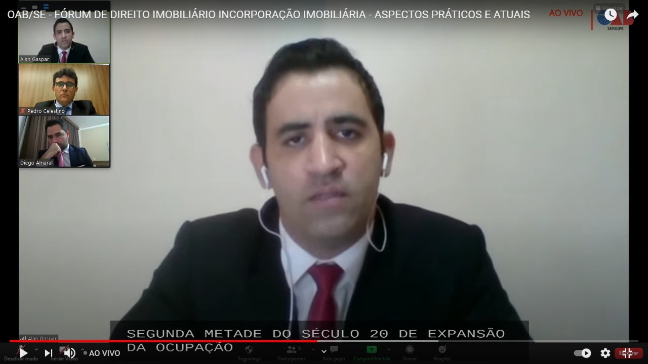 Nesta terça-feira, 27, juristas de renome nacional abordaram os principais aspectos, práticos e atuais, da incorporação imobiliária em mais um evento gratuito, virtual e aberto ao público promovido pela Ordem dos Advogados do Brasil, em Sergipe, com transmissão pelo Youtube.