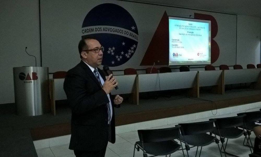 Aracaju – A Escola Superior de Advocacia (ESA/SE) realizou na noite desta segunda-feira, 02, a primeira aula do curso telepresencial ‘Instrução Normativa nº 39 do TST: O que se aplica do Novo CPC ao Processo do Trabalho? ’, que foi transmitida ao vivo direto de São Paulo para Aracaju e outras 166 cidades do país. A aula ministrada por Fabio Rodrigues, especialista em direito do trabalho, foi acompanhada pelos advogados sergipanos no auditório da Caixa de Assistência dos Advogados – CAA/SE, localizada na Travessa Martinho Garcez, 71, no Centro da capital.