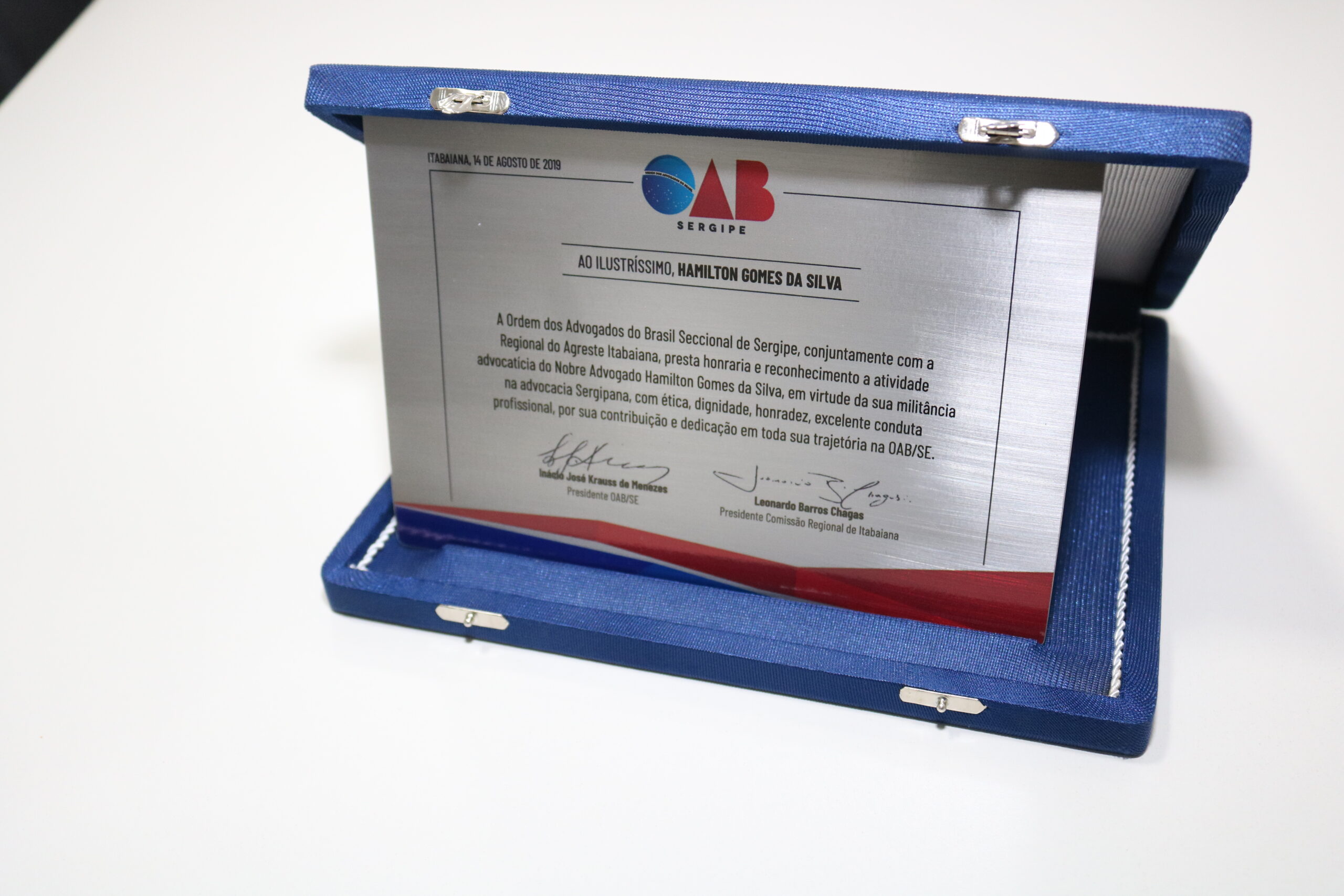 Após a solenidade de compromisso foi realizada uma homenagem ao advogado itabaianense, Amilton Gomes da Silva, pela passagem do Dia do Advogado. De acordo com o presidente da Comissão Regional de Itabaiana, Leonardo Chagas, o advogado Amilton Gomes foi escolhido por ser um veterano e por ter uma relevante história de vida e profissional em Itabaiana.