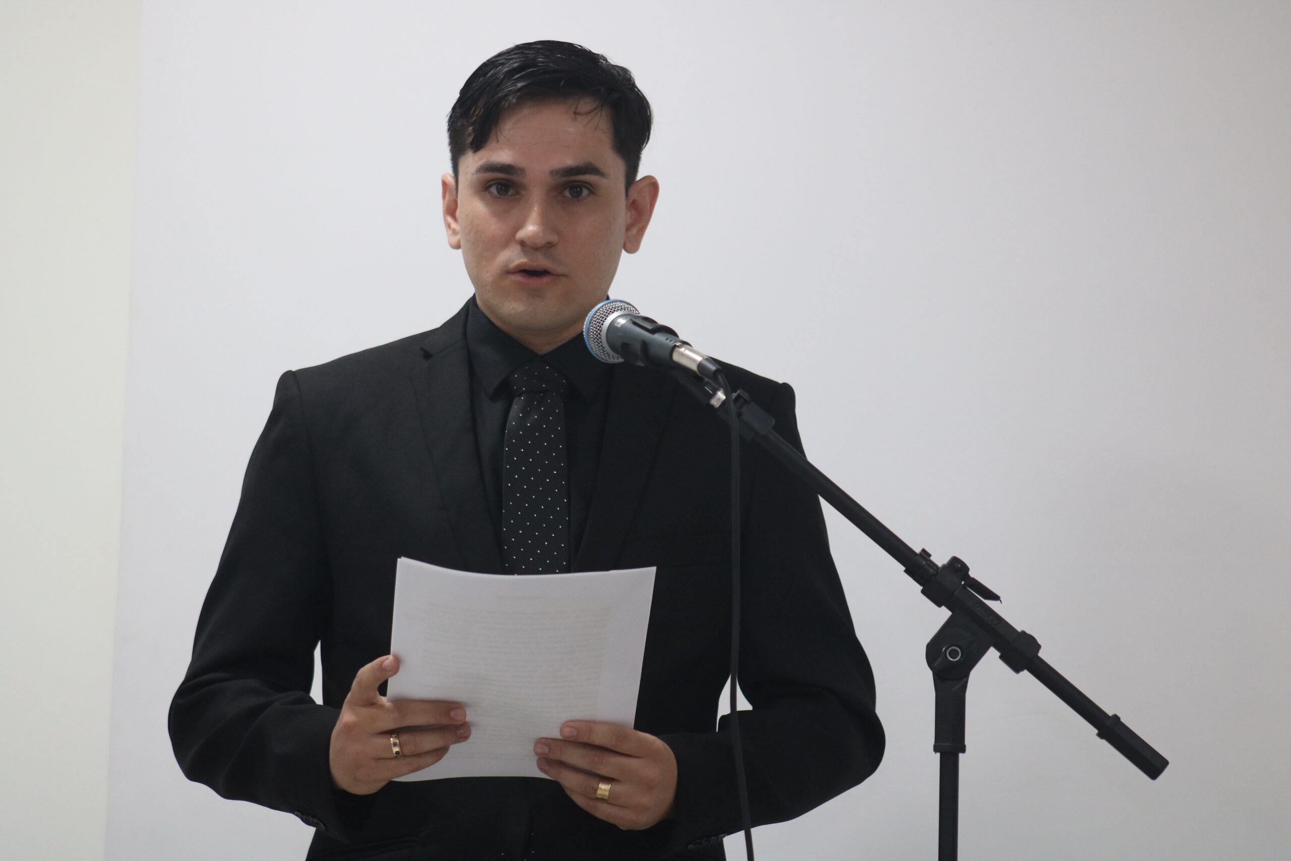 O orador da turma Juan Max Gois Mendonça destacou em seu discurso a enorme satisfação de estar recebendo a tão sonhada carteira profissional da OAB. Ele agradeceu a família, aos colegas, professores e a todos que contribuíram e estiveram ao seu lado.