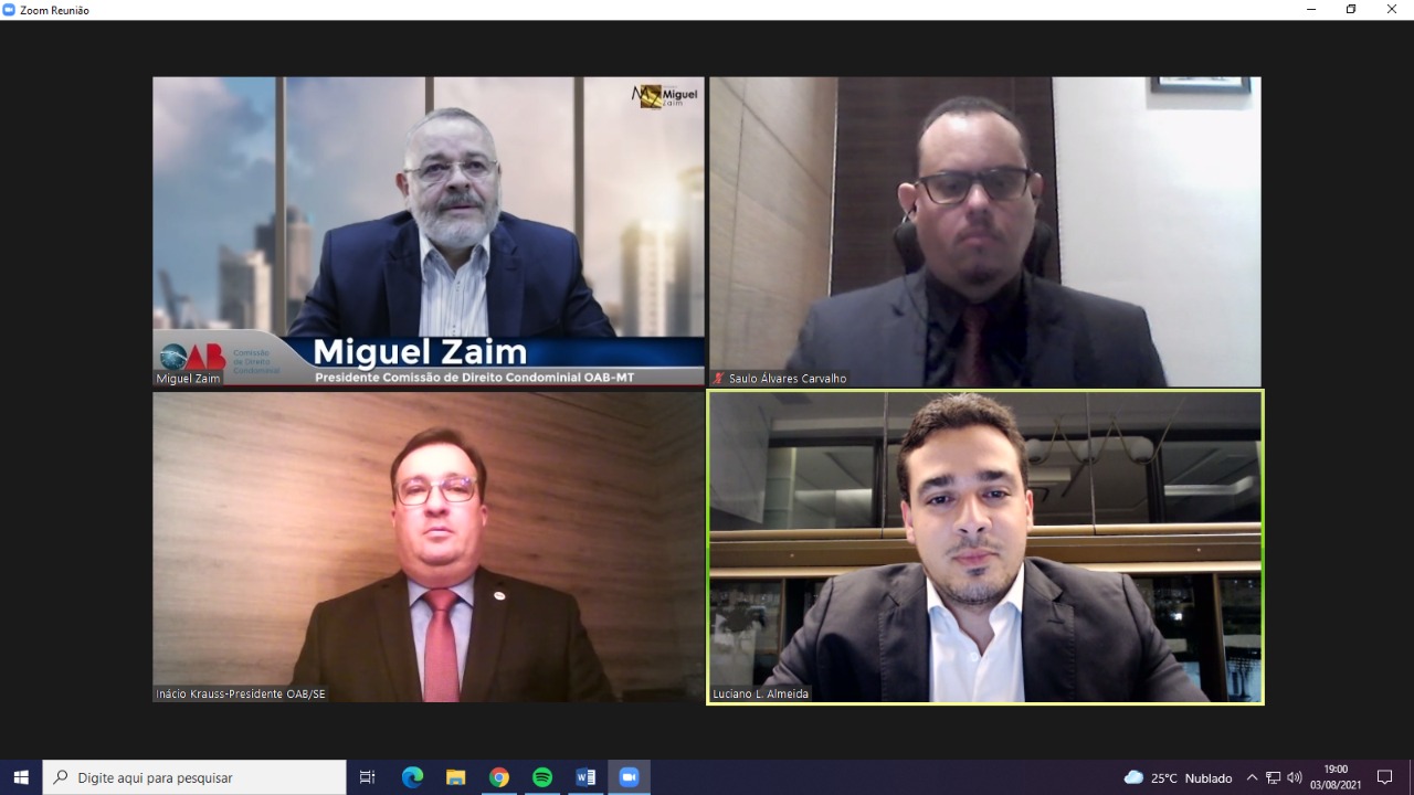 A pauta da noite foi a valorização da advocacia condominial, com a exposição de Miguel Zaim, presidente da Comissão de Direito Condominial da OAB Mato Grosso. Gratuito e aberto ao público, o webnário foi transmitido ao vivo através do canal da OAB/SE no Youtube.