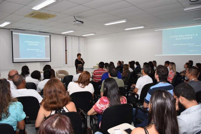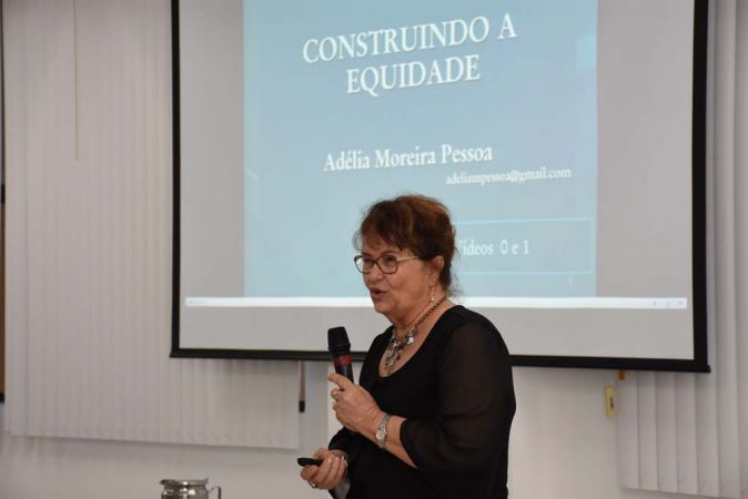 A equidade de gênero foi abordada pela palestrante Adélia Pessoa, que destacou a importância do momento para refletir e desconstruir os estereótipos, preconceitos e mitos que ainda permeiam a sociedade. “Atualmente existe uma igualdade na lei e está muito claro que homens e mulheres são iguais em direitos e obrigações. Entretanto, na realidade social, temos ainda muitas discriminações, preconceitos, estereótipos”, explanou.