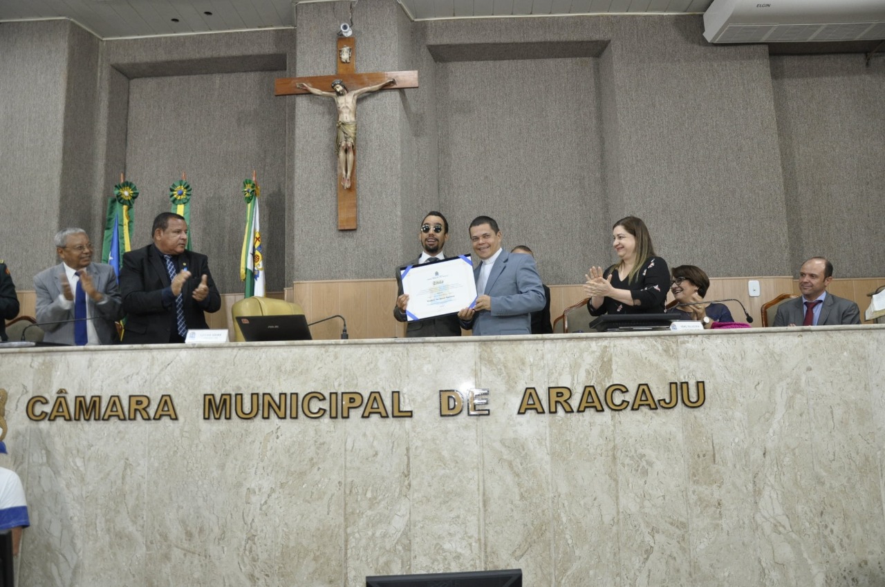 A Ordem dos Advogados do Brasil, em Sergipe (OAB/SE), representada pela vice-presidente Ana Lúcia Dantas Souza Aguiar, participou nesta terça-feira, 6, no Plenário da Câmara Municipal de Aracaju, da solenidade de entrega do Título de Cidadão Aracajuano ao padre Rogério de Jesus Santana, pároco da Paróquia São José, do Bairro São José. A homenagem foi uma propositura de autoria do vereador Lucas Aribé.