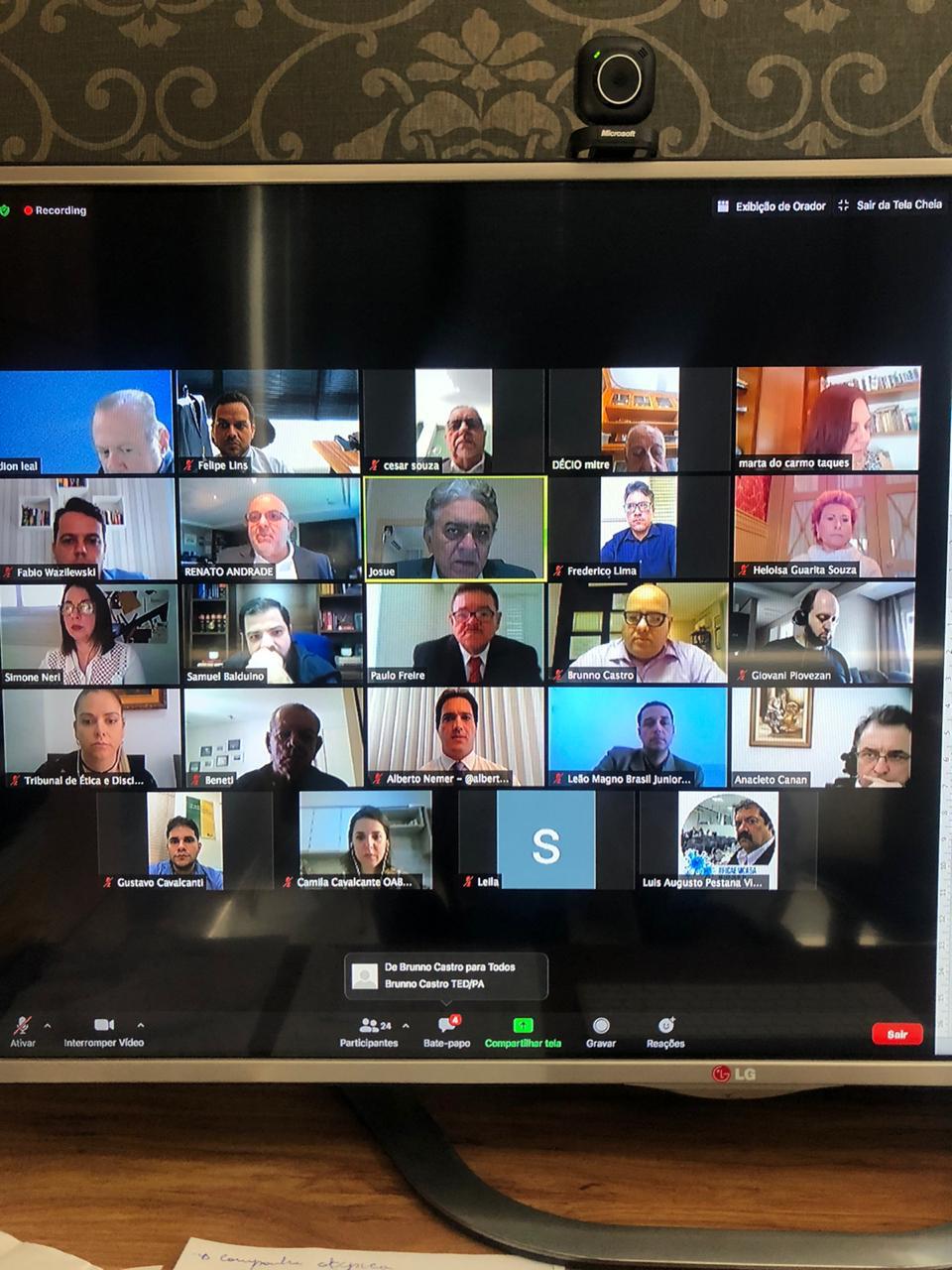 A Ordem dos Advogados do Brasil, em Sergipe (OAB/SE) participou na última segunda-feira, 20, da Reunião do Colégio de Presidentes de Tribunais de Ética. O presidente do Tribunal de Ética e Disciplina da OAB/SE, Leão Magno Brasil Junior, representou a Seccional sergipana no evento realizado por meio de videoconferência.