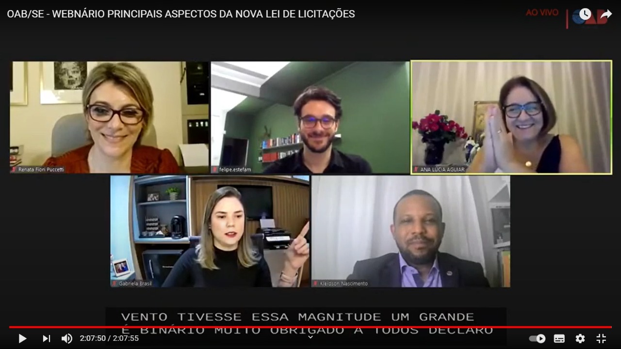 A Ordem dos Advogados do Brasil, em Sergipe, por meio da Escola Superior de Advocacia e da Comissão de Estudos de Licitações e Contratos, realizou um webnário sobre os principais aspectos da Nova Lei de Licitações, sancionada em abril pelo presidente da República.
