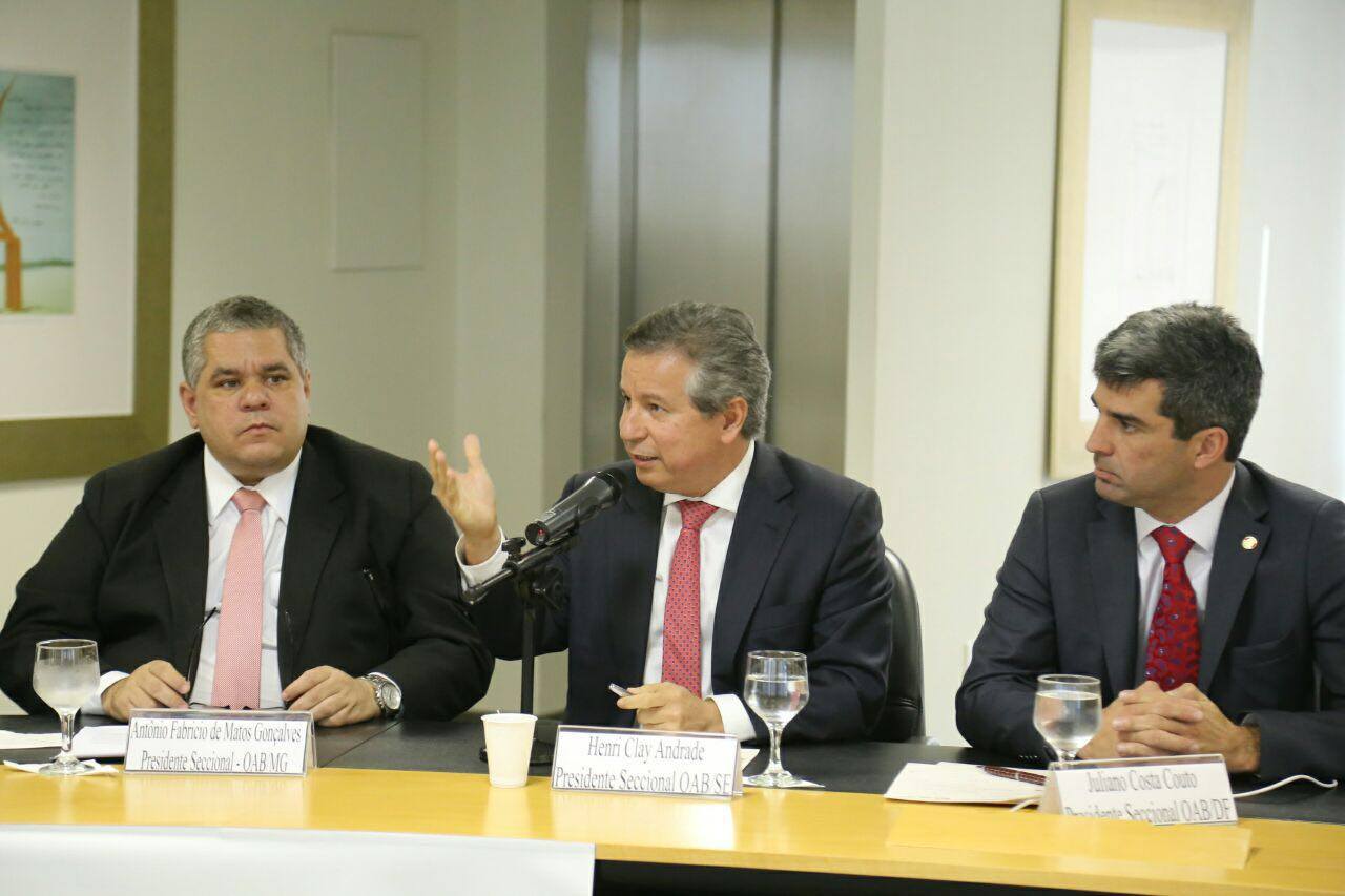 O Presidente da OAB/SE, Henri Clay Andrade, participou na manhã de hoje, 21, do Ato em Defesa do Trabalho e Contra o Corte Orçamentário, realizado na sede do Conselho Federal da OAB em Brasília. Representando o Colégio de Presidentes da OAB, expressou com contundência defesa da Justiça do Trabalho, tecendo críticas ao corte orçamentário sofrido pela justiça especializada.