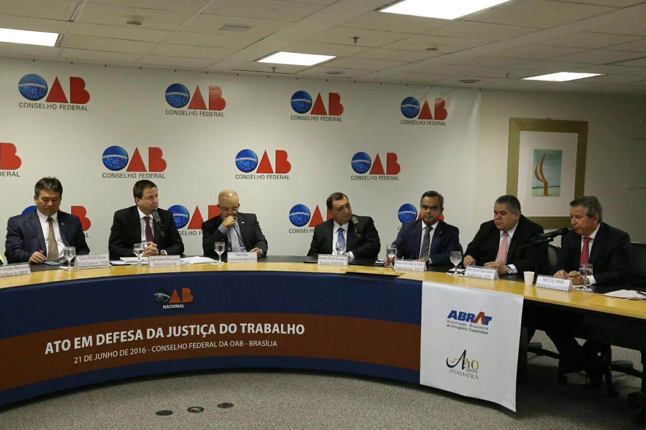 O ato foi presidido pelo Presidente da OAB Nacional, Cláudio Lamachia, onde estiveram presentes os Presidentes das Seccionais da OAB, a Presidente da ABRAT, Silvia Lopes Burmeister, o Presidente do TRT da 20ª Região, Desembargador Fábio Túlio Correia Ribeiro, além de diversos Presidentes dos Tribunais Regionais do Trabalho.