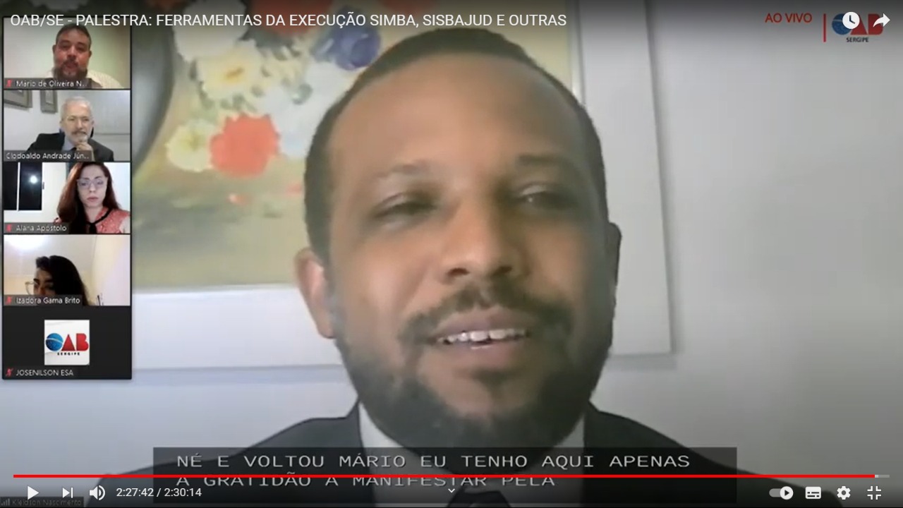 A palestra foi transmitida através do canal da OAB/SE no Youtube. Na ocasião, o presidente da Seccional, Inácio Krauss, deu as boas-vindas aos participantes e enalteceu a transmissão online, pois oportuniza a capacitação não só da advocacia sergipana, mas também brasileira.