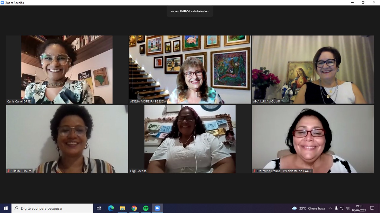 A presidente da Comissão de Defesa dos Direitos da Mulher da OAB/SE, Adélia Moreira Pessoa, pontuou sobre a relevância do evento. “Estamos afastados do nosso dia a dia, do nosso contato presencial, mas nós não podemos parar. Com que problemas tem se preocupado cada uma de nós? A mim me parece que o momento é de lutarmos pelo conhecimento geral de todas as leis e tratados antidiscriminatórios que o Brasil ratificou e pela implantação efetiva em nosso viver, no viver do nosso dia a dia o chamado direito contra a discriminação”, enfatizou.