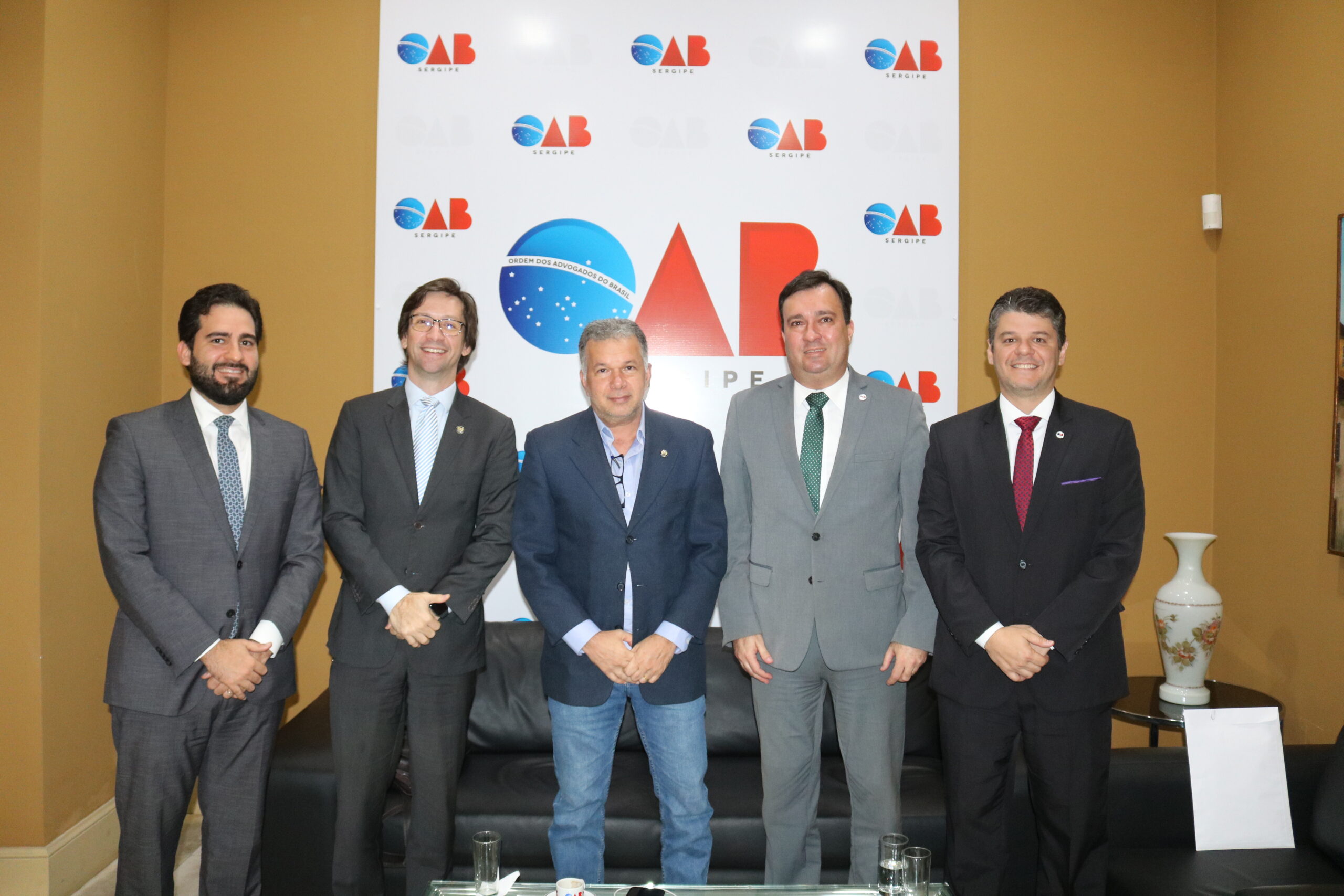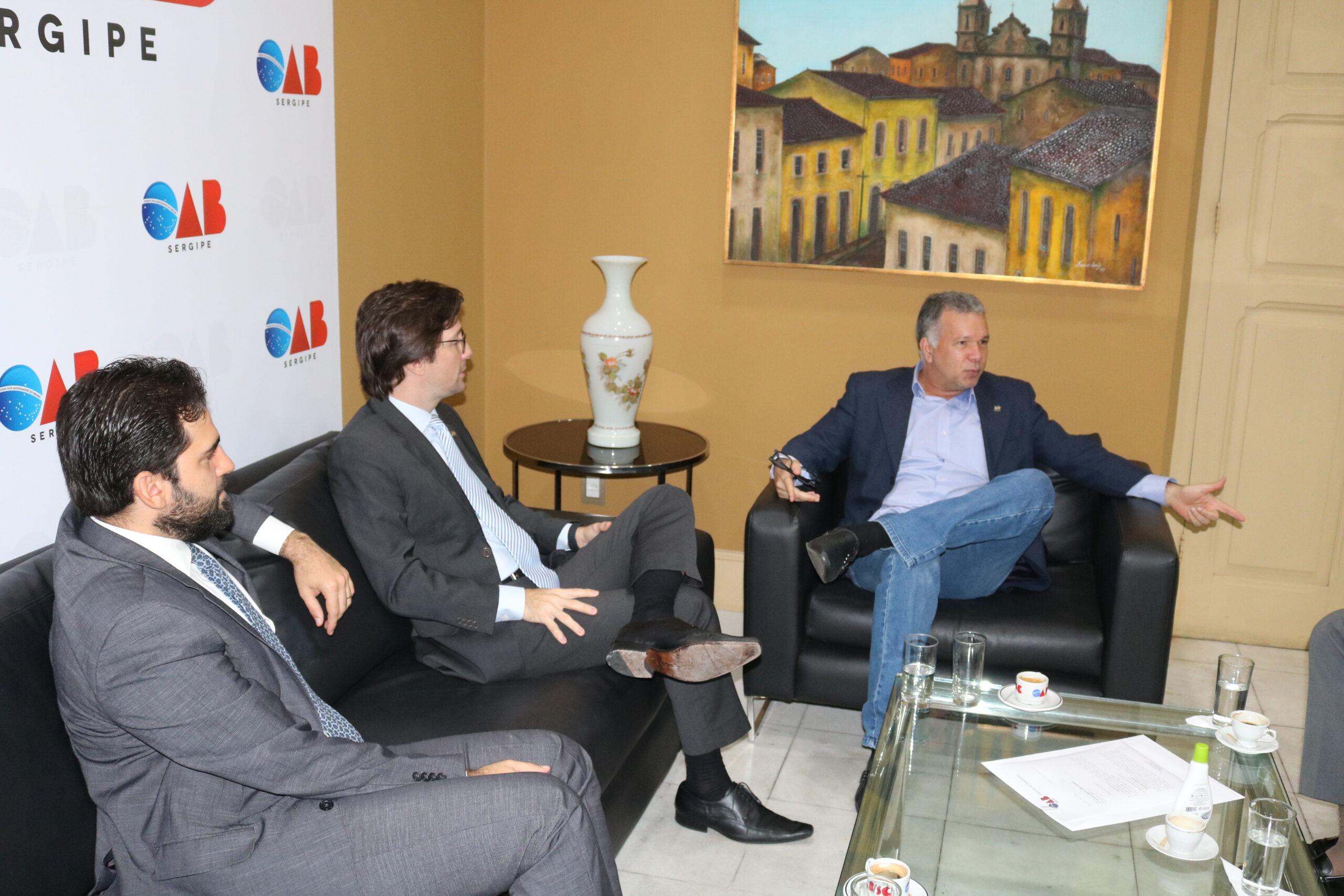 Nesta terça-feira, 17, pela manhã, a Diretoria da Ordem dos Advogados do Brasil, em Sergipe (OAB/SE), recebeu a visita de cortesia do presidente da Associação dos Magistrados de Sergipe (AMASE), Gustavo Adolfo Plech Pereira, e do vice-presidente, Roberto Alcântara de O. Araújo. Os representantes da AMASE foram recepcionados pelo presidente da OAB, Inácio Krauss, pelo secretário-geral, Aurélio Belém, e pelo tesoureiro, David Garcez.
