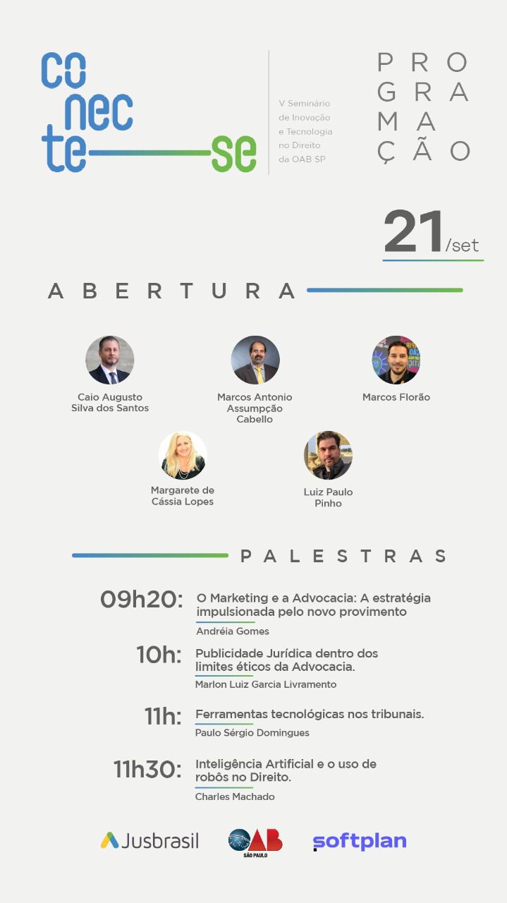 Foram realizados quatro painéis com a discussão de temas como: “Institucionalização da Marca Jurídica”, tendo como expositora Andréia Gomes; “Publicidade Jurídica Dentro dos Limites Éticos da Advocacia”, apresentado pelo advogado Marlon Luiz Garcia Livramento; “Ferramentas Tecnológicas nos Tribunais”, que teve como expositor o desembargador do Tribunal Regional Federal da 3ª Região, Paulo Sérgio Domingues; e “Inteligência Artificial e o uso de Robôs no Direito”, apresentado pelo advogado Charles Machado.