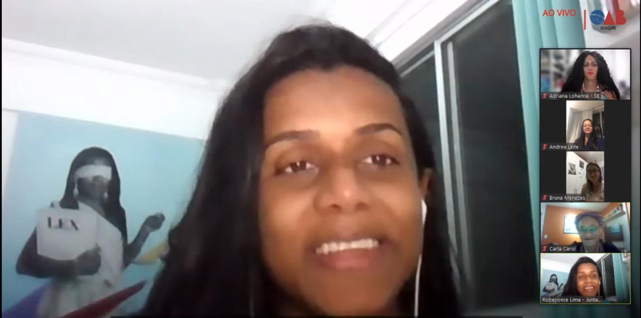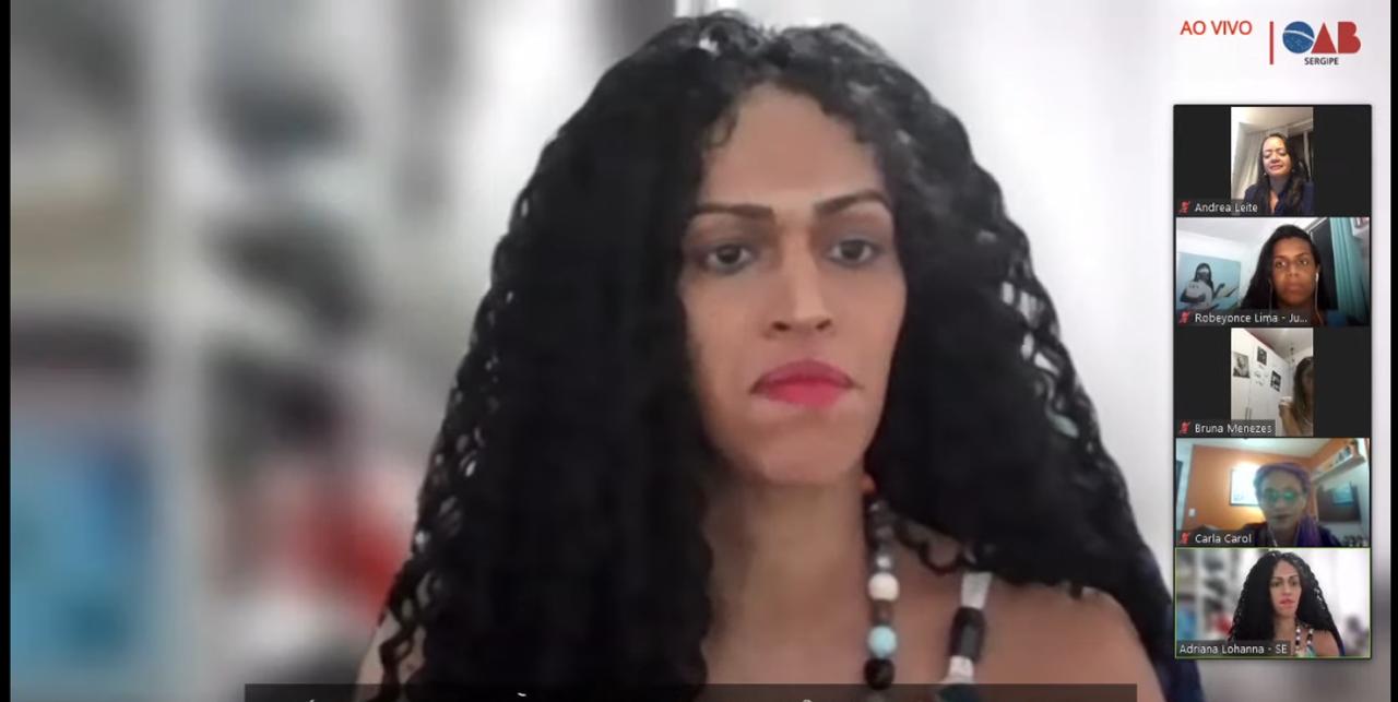 Nessa terça-feira, 13, às 19h, foi realizado o segundo dia do Ciclo de Palestras “Pensamento de Mulheres Negras: Vivência, Militância e Estudos”. O evento, promovido pela Ordem dos Advogados do Brasil, em Sergipe (OAB/SE), por meio do Grupo de Trabalho Raça, Gênero e Etnia, da Comissão de Defesa dos Direitos da Mulher, e da Comissão de Igualdade Racial, teve como palestrante a primeira advogada trans do Estado de Pernambuco e membra da Comissão de Diversidade Sexual e de Gênero da OAB-PE, Robeyoncé Lima.