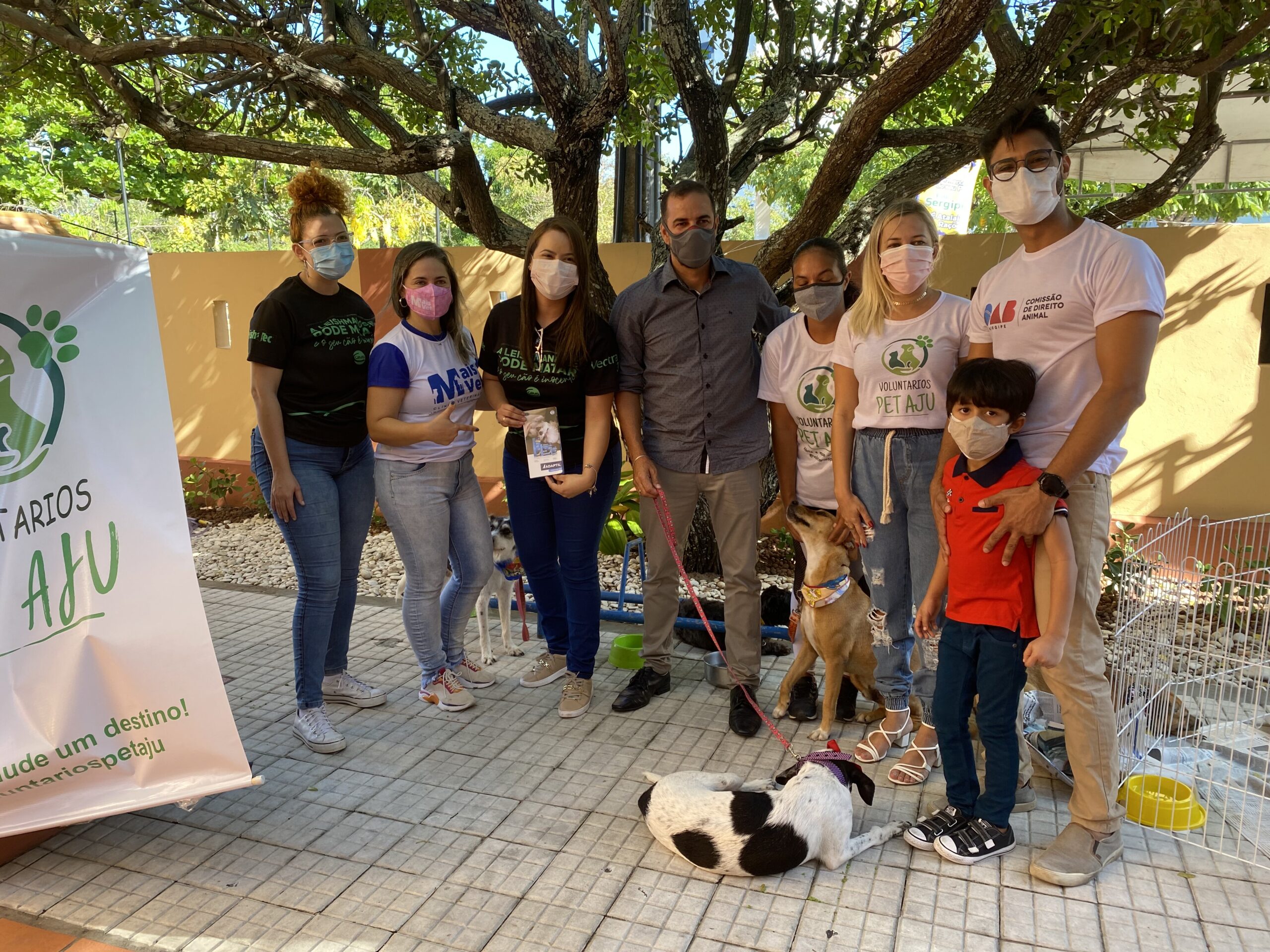 Alessandra Campos, presidente da ONG “Voluntários Pet Aju”, conta que todos os cães foram resgatados em situação de maus tratos. “Andinho, um dos cachorros que trouxemos, foi esfaqueado por um morador de rua. A gente o resgatou e hoje ele está aqui saudável”.