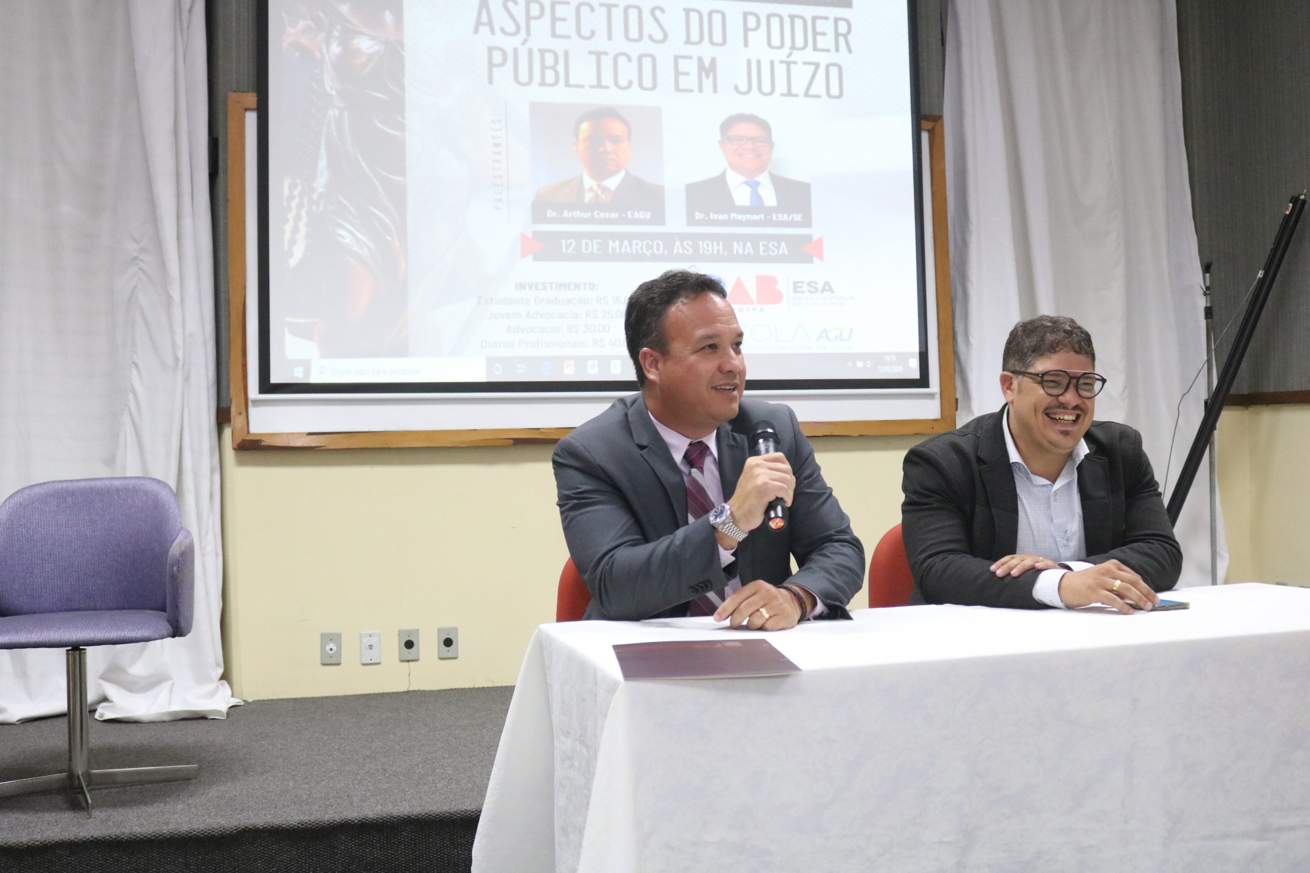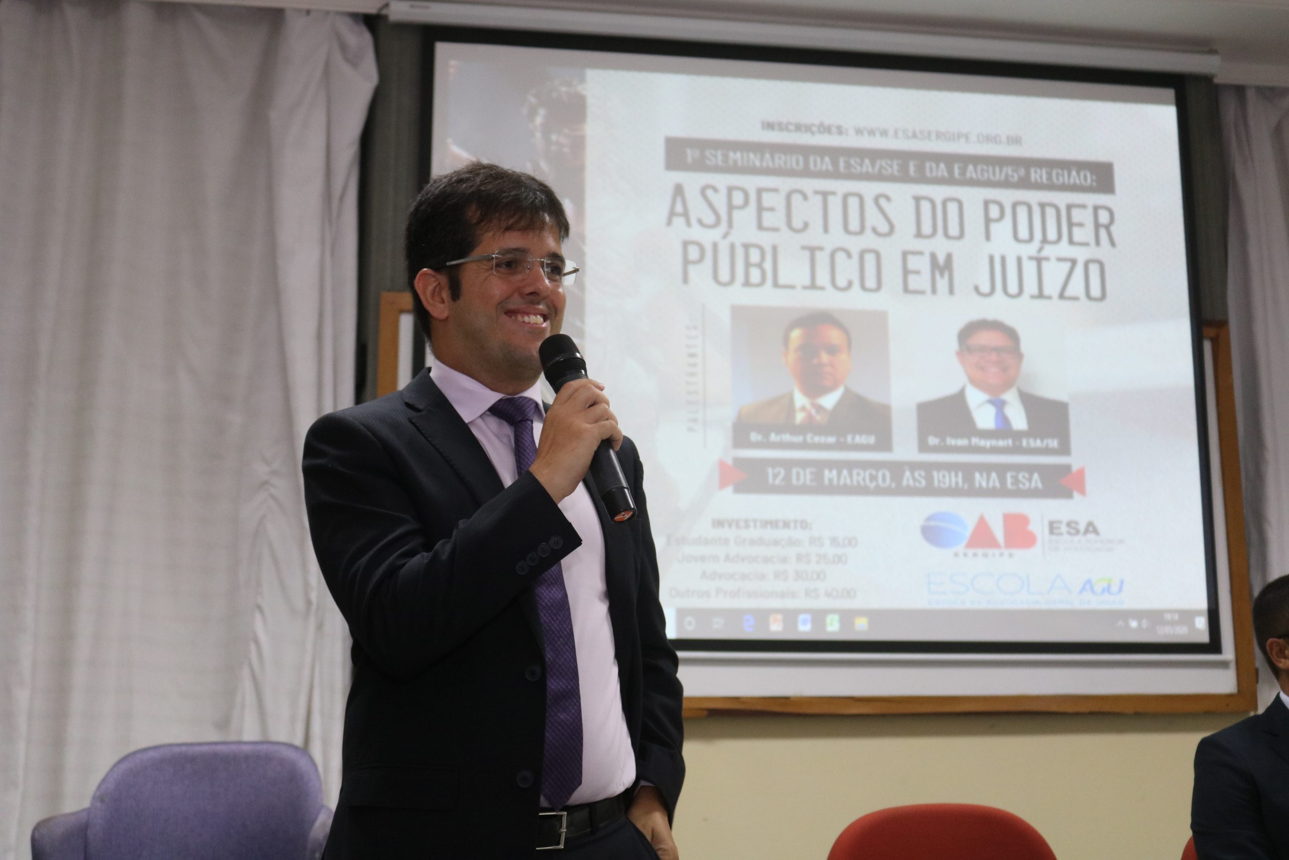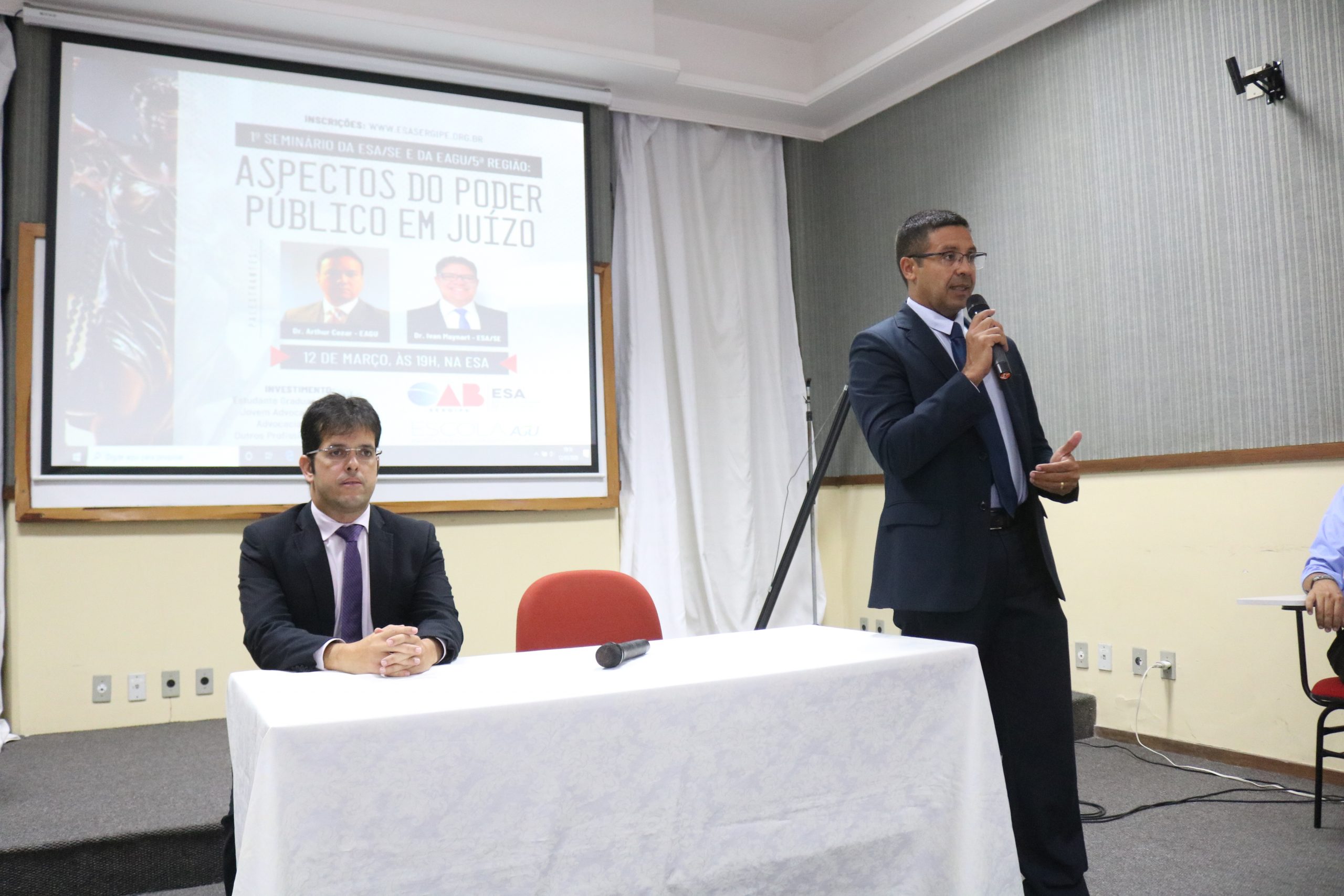 O seminário realizado na última quinta-feira, 12, pela Escola Superior de Advocacia de Sergipe – em parceria com a Escola da Advocacia-Geral da União – colocou em discussão aspectos do poder público em juízo. O evento contou com as palestras do procurador estadual, Arthur Cezar Azevêdo Borba, e do procurador municipal, Ivan Maynart Santos Rodrigues.