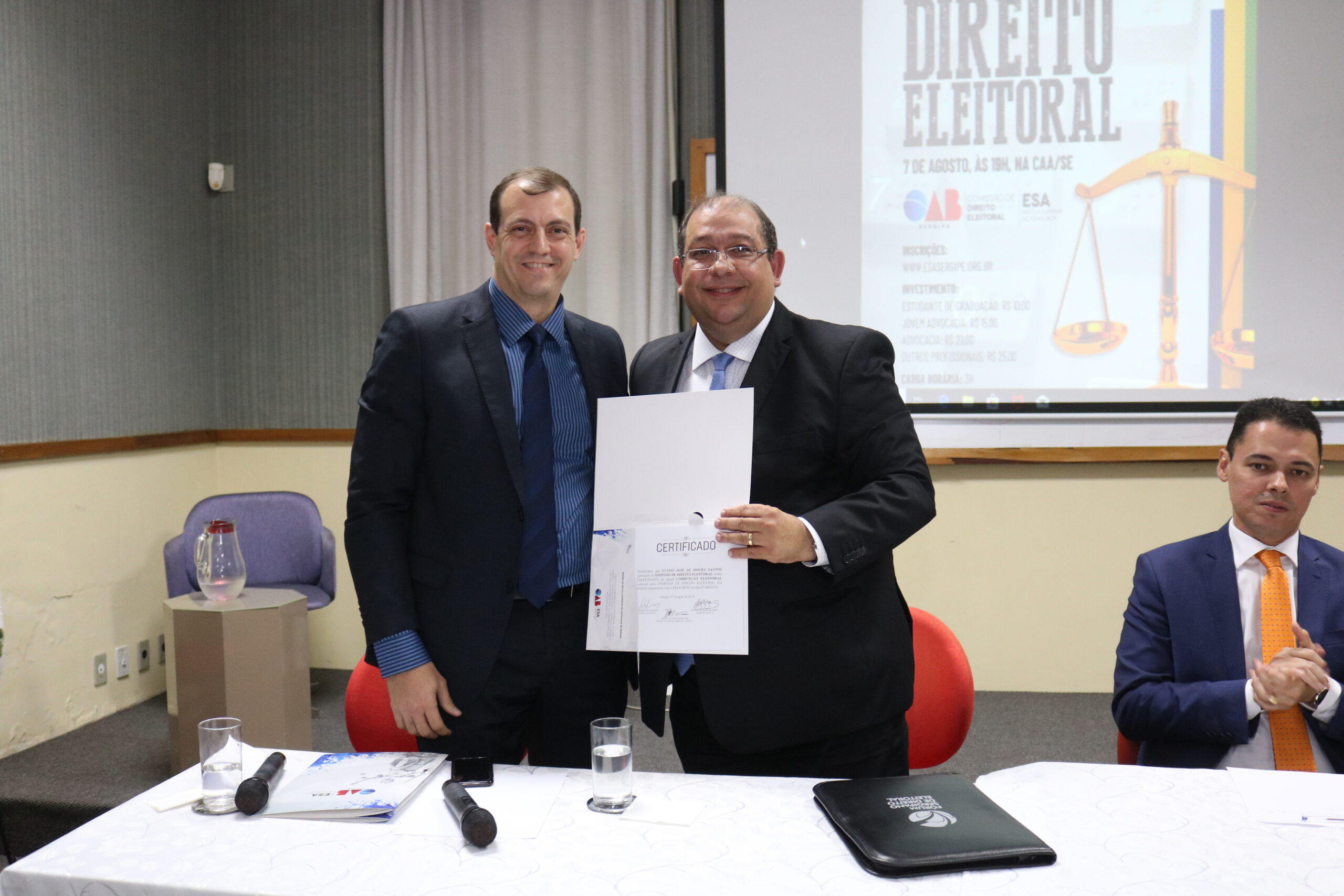 A Ordem dos Advogados do Brasil, em Sergipe (OAB/SE), por meio da Comissão de Direito Eleitoral e com o apoio da Escola Superior de Advocacia (ESA) realizou com sucesso na noite dessa quarta-feira, 7, o Simpósio de Direito Eleitoral. Com auditório lotado, o evento reuniu a Diretoria da OAB/SE, representantes da CAASE e da ESA, conselheiros da Seccional, advogados, estudantes e pessoas interessadas no tema.
