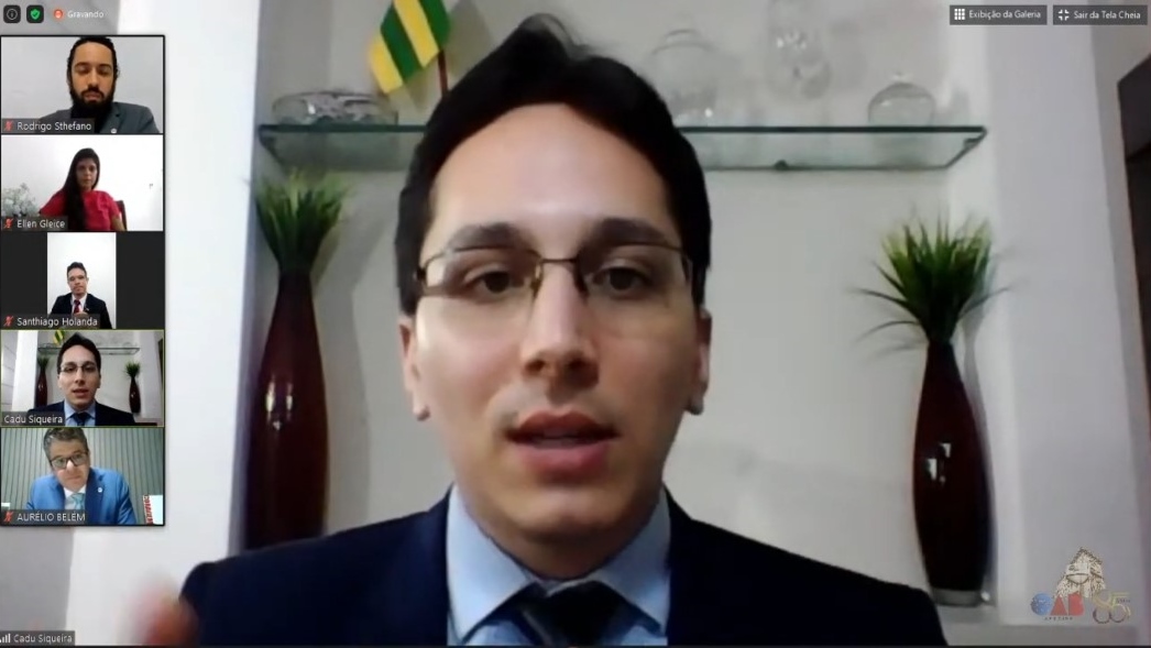 O secretário-geral da OAB, Aurélio Belém iniciou a sua fala ressaltando que a pandemia trouxe lições que todos devem aprender. Segundo ele, a advocacia continua e é preciso que todos se reinventem. “A advocacia rima com democracia e por sua vez rima com cidadania. Temos um compromisso ético firmado que devemos relembrar a cada dia e a advocacia se fortalece quando essa função pública é exercida com afinco. Não há segredo para o sucesso, mas há um tripé no qual eu acredito. O primeiro pilar é o rigor técnico, o advogado precisa estudar sempre”, afirmou.