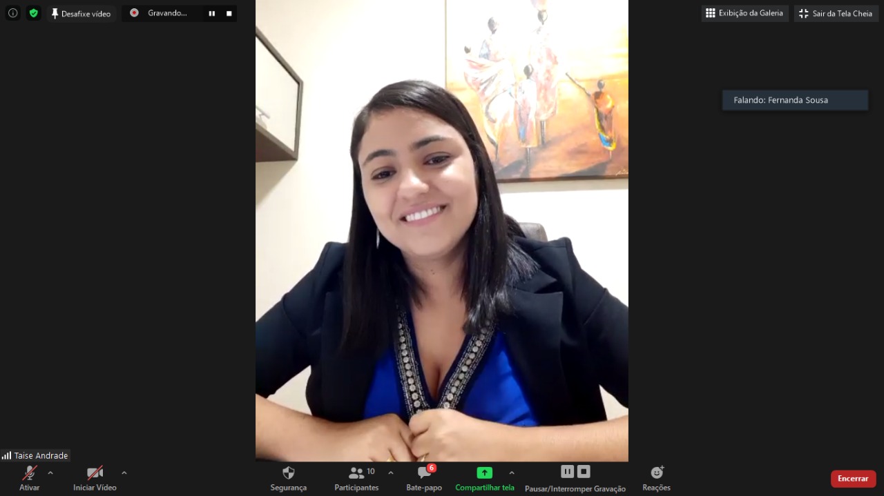 Karina Garcez proferiu sua explanação contando de sua vivência profissional ante à pandemia. “O que o jovem advogado, ainda mais em Sergipe, que possui uma realidade mais complicada na seara tributária, tem enfrentado? E essa já é uma dificuldade: a de ingressar nas empresas”.